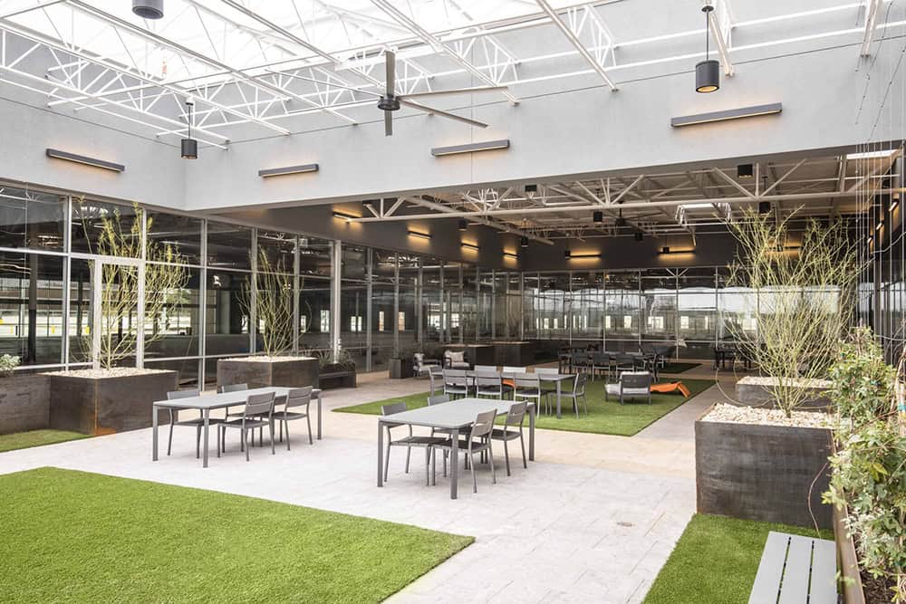 A 220,000 square foot former Walmart renovated into Class A office space, including an exterior courtyard, outdoor pocket park, basketball courts, and community gym.